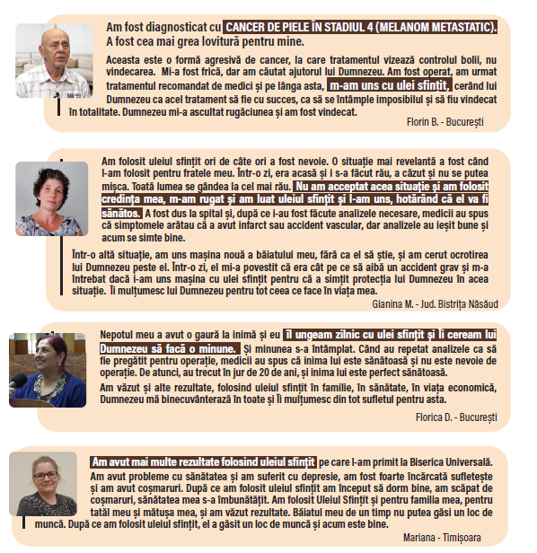 REZULTATE PRIN CREDINȚĂ FOLOSIND ULEIUL SFINȚIT